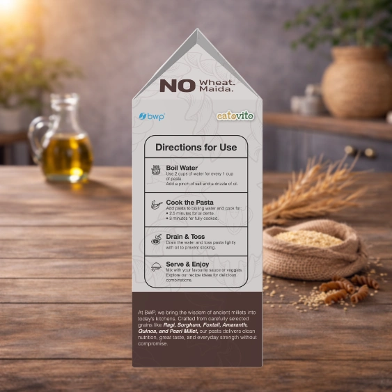 • Combines ancient millets with modern nutrition to create a healthier alternative to regular pasta.